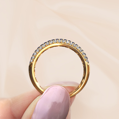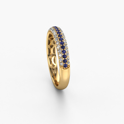 This Emely 2 ring in 14 Carat gold is set with sapphire. This gold stacked Emely 2 ring is the perfect addition to your ring collection! As the name suggests, it is a ring which can be combined on one finger with another ring. It gives you the opportunity to create your own style. A stacked ring usually represents a certain memory of someone special or a memorable moment. It is common to combine a stacked ring, representing an anniversary, with a wedding ring. But this pavé set ring, combined with your other rings, also makes a classy fashion item. How do you like this modern gold ring? Simply customize this Emely 2 ring, using our online tool. Subsequently, your personal pavé set Emely 2 ring will be made by hand by our goldsmiths. Precious metals and gemstones can be customized to your liking. Do you have specific preferences which are unavailable in our online tool? Please feel free to contact us. We will customize your personal modern ring to your liking.After receiving your order, our goldsmiths will passionately start the creative process of making your ring in our own studio. Because we don't have a big stockpile, these costs will not be passed on to you. Our pricing is proof of that! We offer top quality jewels at lowest price, guaranteed.To make it easier for you, we offer a 30 day return policy. Check our terms and conditions.