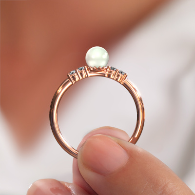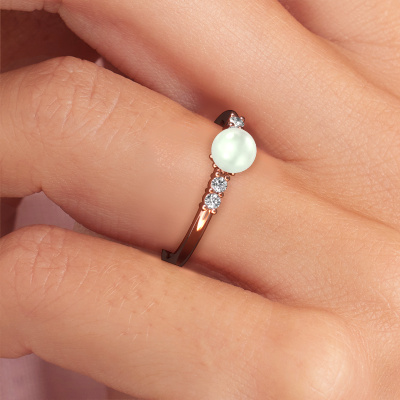 How would you describe your own style? Are you looking for something uniquely different? This pearl rose gold Cecile ring is astonishing! Simply customize to your or her own liking. This ring is set with white pearl. These white pearls have been carefully selected because your ring must be adorned with nothing but the most beautiful gemstone. Wouldn't you agree? Our expert goldsmith will create your ring in our own crafting studios, where the white pearl will be set with care. The ring will then be polished to perfection to give it that extra sparkle. It's a perfect ring for a woman of excellent taste!Our goldsmiths passionately create your customized ring to your liking with the utmost care. The rose gold ring, as shown here, can be customized using our online tool. Feel free to ask our jewel designers for assistance if you want changes made which are unavailable in our online tool. We are happy to answer your questions.After receiving your order, our goldsmiths will start the creative process of making your Cecile ring. We don't keep stock. This is advantageous because these costs will not be passed on to you. Therefore, we can offer jewellery at exceptionally low prices.To make it easier for you, we offer a 30 day return policy. Check our terms and conditions.