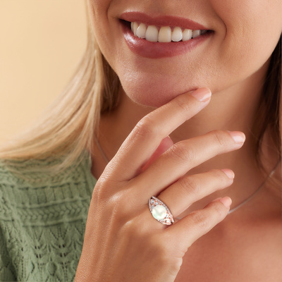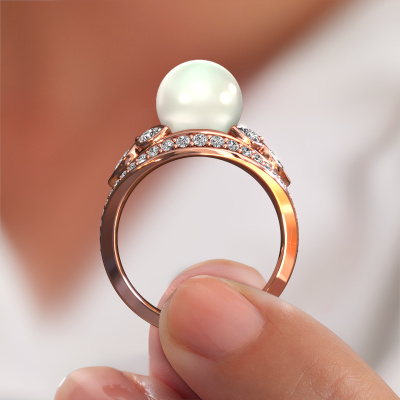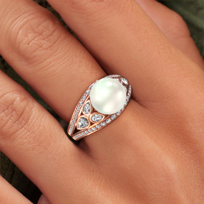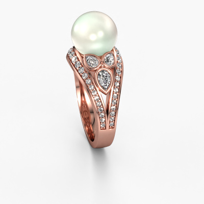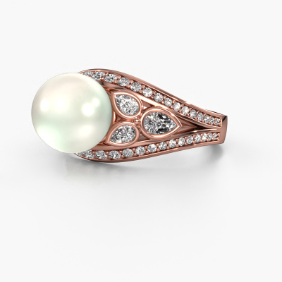 This pave set ring is called Marlies. This 14 Carat rose gold ring is set with white pearls 9 mm. The band of this rose gold ring is set with rows of white pearls which seem to have no beginning nor end. Our goldsmith carefully selects the gemstones and sets them with the utmost precision. For maximum shine, the white pearls have to align perfectly. While artfully crafting and polishing the jewellery, light fall is constantly monitored, until the expert goldsmith is satisfied with the result. Designed by you, created especially for you!The pearl Marlies ring, as shown here, can be customized to your liking. Our online tool offers many different options but please feel free to contact us if you want changes made to your Marlies ring, which are unavailable in our online tool.By using a combination of the latest modern techniques, combined with ancient crafting, we can make all our rings in our own studio. Each jewel is made to order. This is advantageous because we can offer you a price you won't find anywhere else.To make it easier for you, we offer a 30 day return policy. Check our terms and conditions.