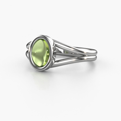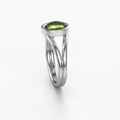In this photo the platinum Lieselotte ring is set with a cabochon peridot. Cabochon means a peridot is shaped first, not faceted, into a specific shape, such as a drop, heart or oval cabochon. Subsequently, it is polished until the gemstone has a orb shaped surface. A cabochon gemstone is a stunning, classy eye-catcher that matches perfectly with a contemporary as well as a vintage style. Our expert goldsmiths shape the charming ring to perfection which makes it unique. The cabochon peridot is set so its unique qualities are strengthened. How do you like this fantasy platinum ring? Simply customize this Lieselotte ring, using our online tool. Subsequently, your personal charming Lieselotte ring will be made by hand by our goldsmiths. Precious metals and gemstones can be customized to your liking. Do you have specific preferences which are unavailable in our online tool? Please feel free to contact us. We will customize your personal fantasy ring to your liking.After receiving your order, our goldsmiths will passionately start the creative process of making your ring in our own studio. Because we don't have a big stockpile, these costs will not be passed on to you. Our pricing is proof of that! We offer top quality jewels at lowest price, guaranteed.To make it easier for you, we offer a 30 day return policy. Check our terms and conditions.