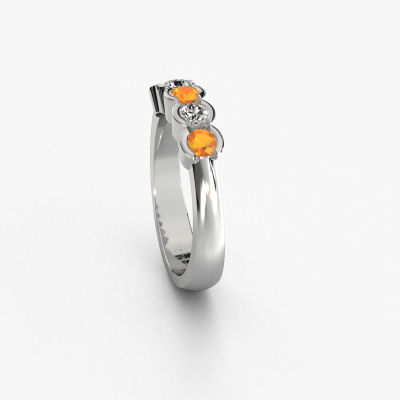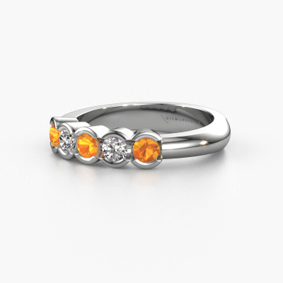 This ring is called Lotte 5. It is made of platinum and is set with 3 mm citrin. Are you looking for a unique platinum ring with a modern appearance? Then this is the ring for you. Simply customize to your or her liking. Perfect for a modern, contemporary woman! This 5 stones ring is adorned with stunning citrin. It was carefully selected because your ring must be adorned with nothing but the most beautiful gemstones. Our expert goldsmith will create your ring in our own studio, where the citrin will be set with great care. The ring will then be polished to perfection to create a beautiful ring. By using a combination of the latest modern techniques, combined with ancient crafting, we can make all our rings in our own studio. Each jewel is made to order. This is advantageous because we can offer you a price you won't find anywhere else.Our team of talented, passionate designers add new ring designs to our online collection daily. Our objective in doing so, is to be able to offer you a wide variety of jewels. Please feel free to request a quote if you have specific wishes for your ring. We guarantee to make you an offer you can't refuse.To make it easier for you, we offer a 30 day return policy. Check our terms and conditions.