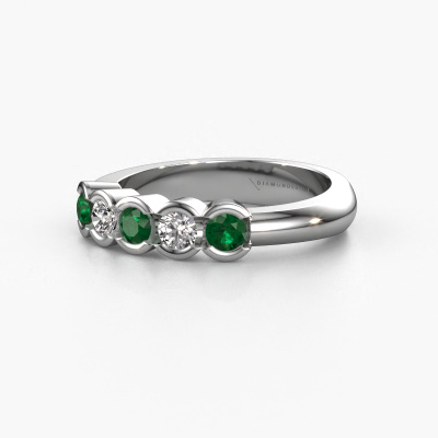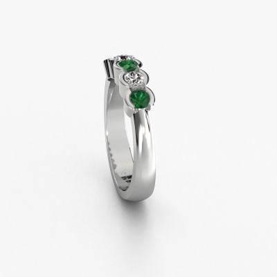 This ring is called Lotte 5. It is made of platinum and is set with 3 mm emerald. Are you looking for a unique platinum ring with a modern appearance? Then this is the ring for you. Simply customize to your or her liking. Perfect for a modern, contemporary woman! This 5 stones ring is adorned with stunning emerald. It was carefully selected because your ring must be adorned with nothing but the most beautiful gemstones. Our expert goldsmith will create your ring in our own studio, where the emerald will be set with great care. The ring will then be polished to perfection to create a beautiful ring. By using a combination of the latest modern techniques, combined with ancient crafting, we can make all our rings in our own studio. Each jewel is made to order. This is advantageous because we can offer you a price you won't find anywhere else.Our team of talented, passionate designers add new ring designs to our online collection daily. Our objective in doing so, is to be able to offer you a wide variety of jewels. Please feel free to request a quote if you have specific wishes for your ring. We guarantee to make you an offer you can't refuse.To make it easier for you, we offer a 30 day return policy. Check our terms and conditions.