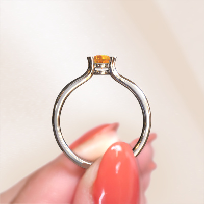 This ring is called Ophelia. It is made of platinum and is set with 4.2 mm citrin. Are you looking for a unique platinum ring with a modern appearance? Then this is the ring for you. Simply customize to your or her liking. Perfect for a modern, contemporary woman! This affordable ring is adorned with stunning citrin. It was carefully selected because your ring must be adorned with nothing but the most beautiful gemstones. Our expert goldsmith will create your ring in our own studio, where the citrin will be set with great care. The ring will then be polished to perfection to create a beautiful ring. By using a combination of the latest modern techniques, combined with ancient crafting, we can make all our rings in our own studio. Each jewel is made to order. This is advantageous because we can offer you a price you won't find anywhere else.Our team of talented, passionate designers add new ring designs to our online collection daily. Our objective in doing so, is to be able to offer you a wide variety of jewels. Please feel free to request a quote if you have specific wishes for your ring. We guarantee to make you an offer you can't refuse.To make it easier for you, we offer a 30 day return policy. Check our terms and conditions.
