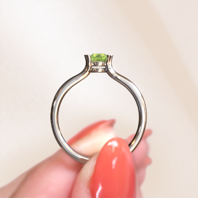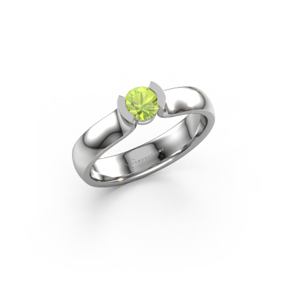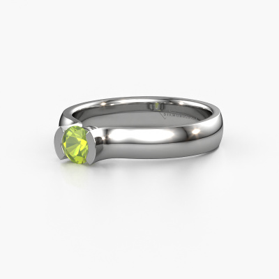 This ring is called Ophelia. It is made of platinum and is set with 4.2 mm peridot. Are you looking for a unique platinum ring with a modern appearance? Then this is the ring for you. Simply customize to your or her liking. Perfect for a modern, contemporary woman! This affordable ring is adorned with stunning peridot. It was carefully selected because your ring must be adorned with nothing but the most beautiful gemstones. Our expert goldsmith will create your ring in our own studio, where the peridot will be set with great care. The ring will then be polished to perfection to create a beautiful ring. By using a combination of the latest modern techniques, combined with ancient crafting, we can make all our rings in our own studio. Each jewel is made to order. This is advantageous because we can offer you a price you won't find anywhere else.Our team of talented, passionate designers add new ring designs to our online collection daily. Our objective in doing so, is to be able to offer you a wide variety of jewels. Please feel free to request a quote if you have specific wishes for your ring. We guarantee to make you an offer you can't refuse.To make it easier for you, we offer a 30 day return policy. Check our terms and conditions.