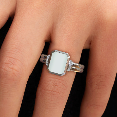 This platinum women´s signet ring is a true work of art! This is our contemporary Gwenn 3 signet ring and it is set with a octagon green sardonyx. In our crafting studio, we use a combination of the latest techniques and ancient traditional craftsmanship, so we are able to create a detailed perfect signet ring. Our expert goldsmiths are fascinated by signet rings. The signet ring can be engraved with initials or a family weapon. Signet rings with family weapons can be handed down from generation to generation and that usually is the case. On top of that, a signet ring is a beautiful, classy piece of jewellery which is trending once more. More than one reason to start or extend the tradition. Please browse our online database for more options on engravings. You can find the departments of our education centre at the bottom of this page. The contemporary Gwenn 3 signet ring, as shown here, can be customized to your liking. Our online tool offers many different options but please feel free to contact us if you want changes made to your Gwenn 3 signet ring, which are unavailable in our online tool.By using a combination of the latest modern techniques, combined with ancient crafting, we can make all our rings in our own studio. Each jewel is made to order. This is advantageous because we can offer you a price you won't find anywhere else.To make it easier for you, we offer a 30 day return policy. Check our terms and conditions.