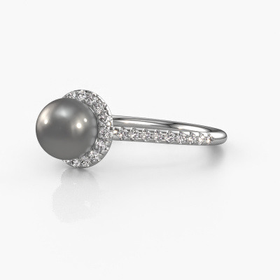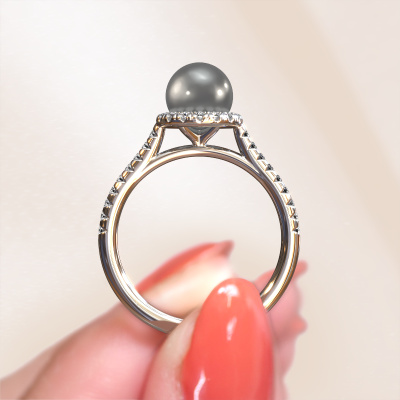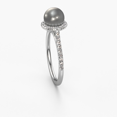 The ring shown above is called Anke. This type of ring is known as a solitaire ring. The platinum ring is set with a 7 mm sphere grey pearl centre stone surrounded by smaller sized diamonds. This refined platinum halo ring, is set with a big grey pearl embraced by smaller sized gemstones. The ring got its name for its halo which the smaller sized diamonds help create. In order to achieve a stunning halo, these smaller sized gemstones have to be aligned perfectly so light reflects evenly on the grey pearl from every angle. And our expert goldsmiths get the job done. Each carefully selected grey pearl is set by hand with utmost precision. During manufacturing, light fall is constantly monitored to make sure the special halo effect is still visible. In the end you get a unique ring with a radiant grey pearl gemstone centrepiece. An exquisite ring indeed! The refined Anke ring, as shown here, can be customized to your liking. Our online tool offers many different options but please feel free to contact us if you want changes made to your Anke ring, which are unavailable in our online tool.By using a combination of the latest modern techniques, combined with ancient crafting, we can make all our rings in our own studio. Each jewel is made to order. This is advantageous because we can offer you a price you won't find anywhere else.To make it easier for you, we offer a 30 day return policy. Check our terms and conditions.