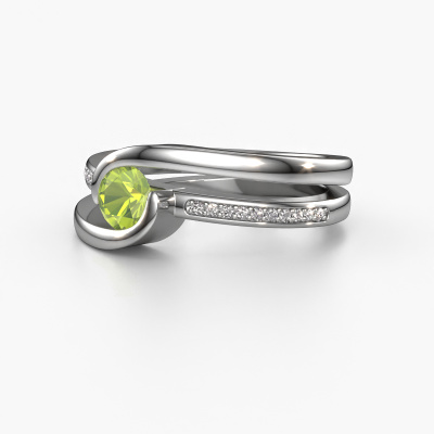 How would you describe your own style? Are you looking for something uniquely different? This graceful platinum Xenia 2 ring is astonishing! Simply customize to your or her own liking. This ring is set with peridot. These peridot have been carefully selected because your ring must be adorned with nothing but the most beautiful gemstone. Wouldn't you agree? Our expert goldsmith will create your ring in our own crafting studios, where the peridot will be set with care. The ring will then be polished to perfection to give it that extra sparkle. It's a perfect ring for a woman of excellent taste!How do you like this fantasy platinum ring? Simply customize this Xenia 2 ring, using our online tool. Subsequently, your personal graceful Xenia 2 ring will be made by hand by our goldsmiths. Precious metals and gemstones can be customized to your liking. Do you have specific preferences which are unavailable in our online tool? Please feel free to contact us. We will customize your personal fantasy ring to your liking.Are you on a budget? Please feel free to contact us, so we can go discuss your options. We offer our rings at guaranteed best price, because we make them to order. You won't find such a price anywhere else!To make it easier for you, we offer a 30 day return policy. Check our terms and conditions.
