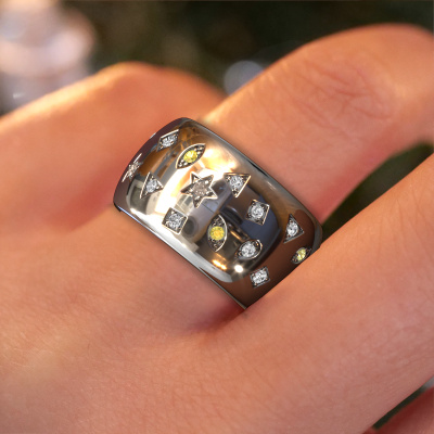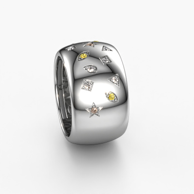 How would you describe your own style? Are you looking for something uniquely different? This wide platinum Sasha 2 ring is astonishing! Simply customize to your or her own liking. This ring is set with yellow sapphire. These yellow sapphire have been carefully selected because your ring must be adorned with nothing but the most beautiful gemstone. Wouldn't you agree? Our expert goldsmith will create your ring in our own crafting studios, where the yellow sapphire will be set with care. The ring will then be polished to perfection to give it that extra sparkle. It's a perfect ring for a woman of excellent taste!As soon as you finished designing your Sasha 2 ring with our online tool, our goldsmiths will start their creative process of making your ring. This will be done with passion and care, according ancient crafting. On top of that, our jewels are made of eco-friendly materials. Simply customize online with our online tool, if you want any changes made. If you want specific changes made to your Sasha 2 ring, that are unavailable in our online tool, please feel free to contact our expert designers.After receiving your order, our goldsmiths will passionately start the creative process of making your ring in our own studio. Because we don't have a big stockpile, these costs will not be passed on to you. Our pricing is proof of that! We offer top quality jewels at lowest price, guaranteed.To make it easier for you, we offer a 30 day return policy. Check our terms and conditions.