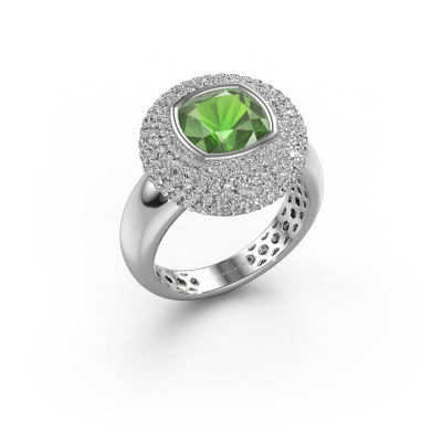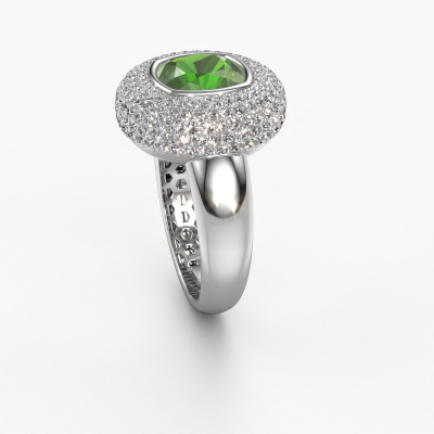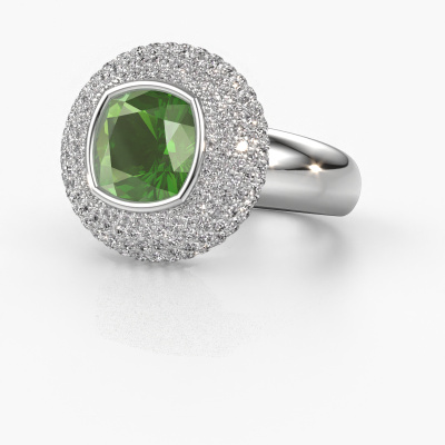 This exclusive platinum Keshia ring is a true work of art! This ring is made of platinum and is set with 8 mm cushion tourmaline green. The smallest ornaments are crafted by our goldsmith with a lot of patience and great passion. In order to create this ring with great precision, this craft requires a keen eye and a skilful hand. A challenge which ignites a fire in our expert goldsmiths. The exquisite tourmaline green are set in a way that their unique qualities are strengthened. This gives the ring an even more glamorous appearance. The ring is unique by itself though, because of the natural birthstones we selected especially for this Keshia ring. And by choosing the precious metal yourself, you create a unique ring. Our goldsmiths passionately create your customized ring to your liking with the utmost care. The platinum ring, as shown here, can be customized using our online tool. Feel free to ask our jewel designers for assistance if you want changes made which are unavailable in our online tool. We are happy to answer your questions.By using our modern techniques, we can design and customize the finest quality jewels with the utmost care for you. Our rings are always priced 30 percent lower than other jewellers. We make rings to order, so we don't have to maintain a large stock. If you have a certain budget, we are more than happy to advice you accordingly.To make it easier for you, we offer a 30 day return policy. Check our terms and conditions.