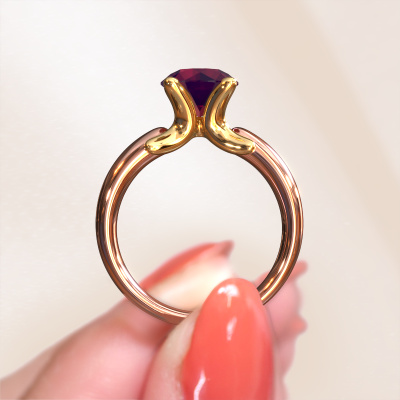 Are you looking for a birthstones ring with an eye-catching single gemstone? How do you like this Jodie ring? This rose gold Jodie ring is set with a beautiful 8 mm round rhodolite. The rhodolite is carefully selected by our rhodolite suppliers. Subsequently, these birthstones are then set by our goldsmith according to ancient tradition. The ring will then be polished to perfection creating a unique ring with a stunning rhodolite. Created especially for you. A customized fantasy ring is the perfect gift! New exquisite designs are added daily by our team of passionate goldsmiths. And each design can be customized. Simply customize the precious metals and the colour of gemstones which will be used, for example. This makes your design of the fantasy Jodie ring truly unique!By using our modern techniques, we can design and customize the finest quality jewels with the utmost care for you. Our rings are always priced 30 percent lower than other jewellers. We make rings to order, so we don't have to maintain a large stock. If you have a certain budget, we are more than happy to advice you accordingly.To make it easier for you, we offer a 30 day return policy. Check our terms and conditions.