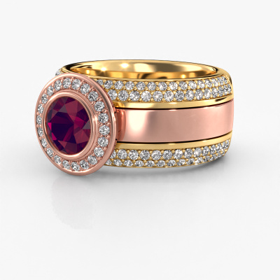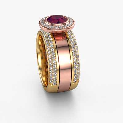 Because of its detailed finish, this wide ring with rhodolite has a stylish appearance. A pavé set ring that fits the contemporary woman like a glove. This rose gold ring, our Roxie, is a true eye-catcher indeed! As soon as we know what you desire,