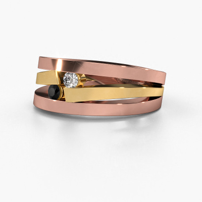 This ring is called Valerie. It is made of 14 Carat rose gold and is set with 0.096 crt black diamond. Are you looking for a unique rose gold ring with a modern appearance? Then this is the ring for you. Simply customize to your or her liking. Perfect for a modern, contemporary woman! This 2 stones ring is adorned with stunning black diamond. It was carefully selected because your ring must be adorned with nothing but the most beautiful gemstones. Our expert goldsmith will create your ring in our own studio, where the black diamond will be set with great care. The ring will then be polished to perfection to create a beautiful ring. By using a combination of the latest modern techniques, combined with ancient crafting, we can make all our rings in our own studio. Each jewel is made to order. This is advantageous because we can offer you a price you won't find anywhere else.New jewellery designs are added to our online collection daily. Our team of passionate designers strive to create extraordinary and diverse designs. Have you seen a ring you like? Please feel free to contact us. Based on a good price/ quality ratio, we will make you an offer you can't refuse!To make it easier for you, we offer a 30 day return policy. Check our terms and conditions.
