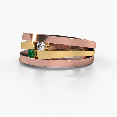 This ring is called Valerie. It is made of 14 Carat rose gold and is set with 2.7 mm emerald. Are you looking for a unique rose gold ring with a modern appearance? Then this is the ring for you. Simply customize to your or her liking. Perfect for a modern, contemporary woman! This 2 stones ring is adorned with stunning emerald. It was carefully selected because your ring must be adorned with nothing but the most beautiful gemstones. Our expert goldsmith will create your ring in our own studio, where the emerald will be set with great care. The ring will then be polished to perfection to create a beautiful ring. By using a combination of the latest modern techniques, combined with ancient crafting, we can make all our rings in our own studio. Each jewel is made to order. This is advantageous because we can offer you a price you won't find anywhere else.New jewellery designs are added to our online collection daily. Our team of passionate designers strive to create extraordinary and diverse designs. Have you seen a ring you like? Please feel free to contact us. Based on a good price/ quality ratio, we will make you an offer you can't refuse!To make it easier for you, we offer a 30 day return policy. Check our terms and conditions.