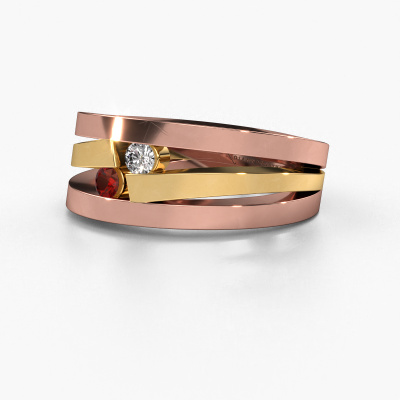 This ring is called Valerie. It is made of 14 Carat rose gold and is set with 2.7 mm garnet. Are you looking for a unique rose gold ring with a modern appearance? Then this is the ring for you. Simply customize to your or her liking. Perfect for a modern, contemporary woman! This 2 stones ring is adorned with stunning garnet. It was carefully selected because your ring must be adorned with nothing but the most beautiful gemstones. Our expert goldsmith will create your ring in our own studio, where the garnet will be set with great care. The ring will then be polished to perfection to create a beautiful ring. By using a combination of the latest modern techniques, combined with ancient crafting, we can make all our rings in our own studio. Each jewel is made to order. This is advantageous because we can offer you a price you won't find anywhere else.New jewellery designs are added to our online collection daily. Our team of passionate designers strive to create extraordinary and diverse designs. Have you seen a ring you like? Please feel free to contact us. Based on a good price/ quality ratio, we will make you an offer you can't refuse!To make it easier for you, we offer a 30 day return policy. Check our terms and conditions.