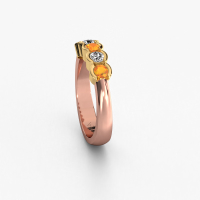 This ring is called Lotte 5. It is made of 14 Carat rose gold and is set with 3 mm citrin. Are you looking for a unique rose gold ring with a modern appearance? Then this is the ring for you. Simply customize to your or her liking. Perfect for a modern, contemporary woman! This 5 stones ring is adorned with stunning citrin. It was carefully selected because your ring must be adorned with nothing but the most beautiful gemstones. Our expert goldsmith will create your ring in our own studio, where the citrin will be set with great care. The ring will then be polished to perfection to create a beautiful ring. By using a combination of the latest modern techniques, combined with ancient crafting, we can make all our rings in our own studio. Each jewel is made to order. This is advantageous because we can offer you a price you won't find anywhere else.Our team of talented, passionate designers add new ring designs to our online collection daily. Our objective in doing so, is to be able to offer you a wide variety of jewels. Please feel free to request a quote if you have specific wishes for your ring. We guarantee to make you an offer you can't refuse.To make it easier for you, we offer a 30 day return policy. Check our terms and conditions.