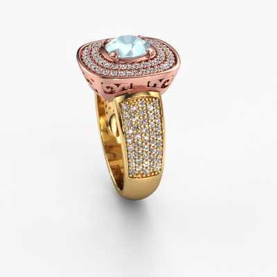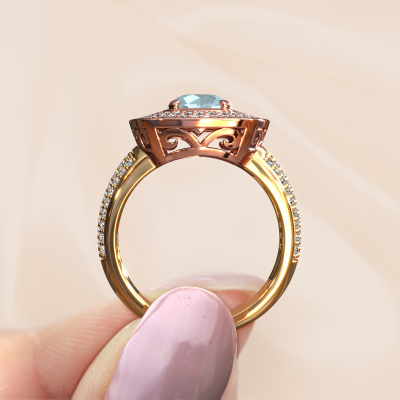 This exclusive rose gold Eliana ring is a true work of art! This ring is made of 14 Carat rose gold and is set with 6 mm round aquamarine. The smallest ornaments are crafted by our goldsmith with a lot of patience and great passion. In order to create this ring with great precision, this craft requires a keen eye and a skilful hand. A challenge which ignites a fire in our expert goldsmiths. The exquisite aquamarine are set in a way that their unique qualities are strengthened. This gives the ring an even more glamorous appearance. The ring is unique by itself though, because of the natural birthstones we selected especially for this Eliana ring. And by choosing the precious metal yourself, you create a unique ring. As soon as you finished designing your Eliana ring with our online tool, our goldsmiths will start their creative process of making your ring. This will be done with passion and care, according ancient crafting. On top of that, our jewels are made of eco-friendly materials. Simply customize online with our online tool, if you want any changes made. If you want specific changes made to your Eliana ring, that are unavailable in our online tool, please feel free to contact our expert designers.By using a combination of the latest modern techniques, combined with ancient crafting, we can make all our rings in our own studio. Each jewel is made to order. This is advantageous because we can offer you a price you won't find anywhere else.To make it easier for you, we offer a 30 day return policy. Check our terms and conditions.