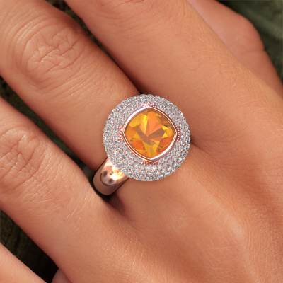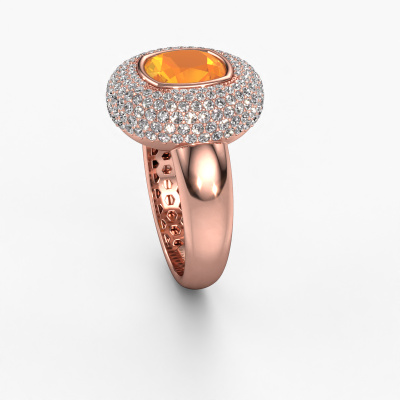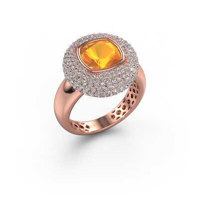 This exclusive rose gold Keshia ring is a true work of art! This ring is made of 14 Carat rose gold and is set with 8 mm cushion citrin. The smallest ornaments are crafted by our goldsmith with a lot of patience and great passion. In order to create this ring with great precision, this craft requires a keen eye and a skilful hand. A challenge which ignites a fire in our expert goldsmiths. The exquisite citrin are set in a way that their unique qualities are strengthened. This gives the ring an even more glamorous appearance. The ring is unique by itself though, because of the natural birthstones we selected especially for this Keshia ring. And by choosing the precious metal yourself, you create a unique ring. Our goldsmiths passionately create your customized ring to your liking with the utmost care. The rose gold ring, as shown here, can be customized using our online tool. Feel free to ask our jewel designers for assistance if you want changes made which are unavailable in our online tool. We are happy to answer your questions.By using our modern techniques, we can design and customize the finest quality jewels with the utmost care for you. Our rings are always priced 30 percent lower than other jewellers. We make rings to order, so we don't have to maintain a large stock. If you have a certain budget, we are more than happy to advice you accordingly.To make it easier for you, we offer a 30 day return policy. Check our terms and conditions.