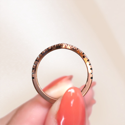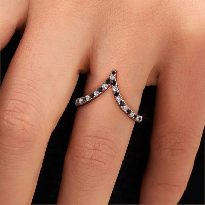 This ring is called Mirtha. It is made of 14 Carat rose gold and is set with 0.018 crt black diamond. Are you looking for a unique rose gold ring with a modern appearance? Then this is the ring for you. Simply customize to your or her liking. Perfect for a modern, contemporary woman! This contemporary ring is adorned with stunning black diamond. It was carefully selected because your ring must be adorned with nothing but the most beautiful gemstones. Our expert goldsmith will create your ring in our own studio, where the black diamond will be set with great care. The ring will then be polished to perfection to create a beautiful ring. After receiving your order, our goldsmiths will passionately start the creative process of making your ring in our own studio. Because we don't have a big stockpile, these costs will not be passed on to you. Our pricing is proof of that! We offer top quality jewels at lowest price, guaranteed.New jewellery designs are added to our online collection daily. Our team of passionate designers strive to create extraordinary and diverse designs. Have you seen a ring you like? Please feel free to contact us. Based on a good price/ quality ratio, we will make you an offer you can't refuse!To make it easier for you, we offer a 30 day return policy. Check our terms and conditions.
