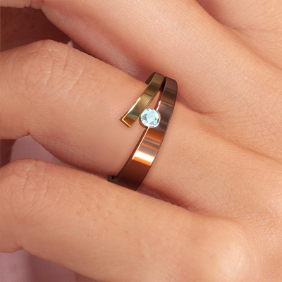 This ring is called Rosario. It is made of 14 Carat rose gold and is set with 3 mm aquamarine. Are you looking for a unique rose gold ring with a modern appearance? Then this is the ring for you. Simply customize to your or her liking. Perfect for a modern, contemporary woman! This edgy ring is adorned with stunning aquamarine. It was carefully selected because your ring must be adorned with nothing but the most beautiful gemstones. Our expert goldsmith will create your ring in our own studio, where the aquamarine will be set with great care. The ring will then be polished to perfection to create a beautiful ring. Are you on a budget? Please feel free to contact us, so we can go discuss your options. We offer our rings at guaranteed best price, because we make them to order. You won't find such a price anywhere else!
