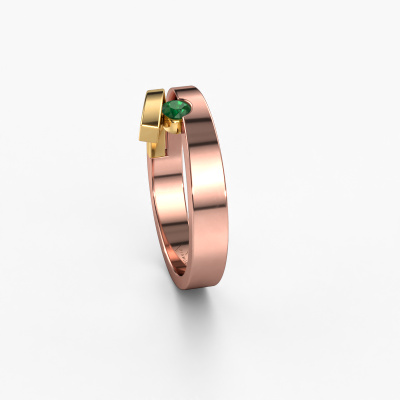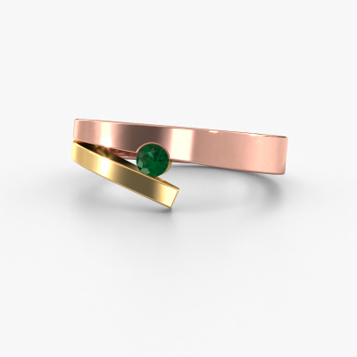 This ring is called Rosario. It is made of 14 Carat rose gold and is set with 3 mm emerald. Are you looking for a unique rose gold ring with a modern appearance? Then this is the ring for you. Simply customize to your or her liking. Perfect for a modern, contemporary woman! This edgy ring is adorned with stunning emerald. It was carefully selected because your ring must be adorned with nothing but the most beautiful gemstones. Our expert goldsmith will create your ring in our own studio, where the emerald will be set with great care. The ring will then be polished to perfection to create a beautiful ring. Are you on a budget? Please feel free to contact us, so we can go discuss your options. We offer our rings at guaranteed best price, because we make them to order. You won't find such a price anywhere else!