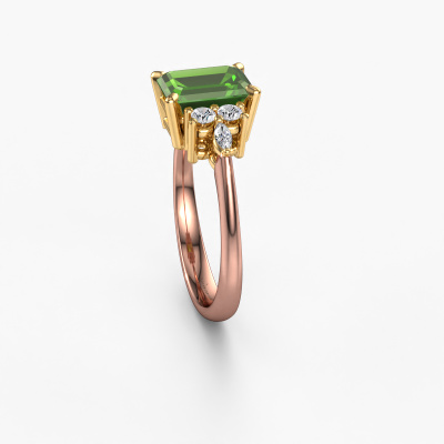 How would you describe your own style? Are you looking for something uniquely different? This fashionable rose gold Sade ring is astonishing! Simply customize to your or her own liking. This ring is set with tourmaline green. These tourmaline green have been carefully selected because your ring must be adorned with nothing but the most beautiful gemstone. Wouldn't you agree? Our expert goldsmith will create your ring in our own crafting studios, where the tourmaline green will be set with care. The ring will then be polished to perfection to give it that extra sparkle. It's a perfect ring for a woman of excellent taste!As soon as you finished designing your Sade ring with our online tool, our goldsmiths will start their creative process of making your ring. This will be done with passion and care, according ancient crafting. On top of that, our jewels are made of eco-friendly materials. Simply customize online with our online tool, if you want any changes made. If you want specific changes made to your Sade ring, that are unavailable in our online tool, please feel free to contact our expert designers.By using a combination of the latest modern techniques, combined with ancient crafting, we can make all our rings in our own studio. Each jewel is made to order. This is advantageous because we can offer you a price you won't find anywhere else.To make it easier for you, we offer a 30 day return policy. Check our terms and conditions.