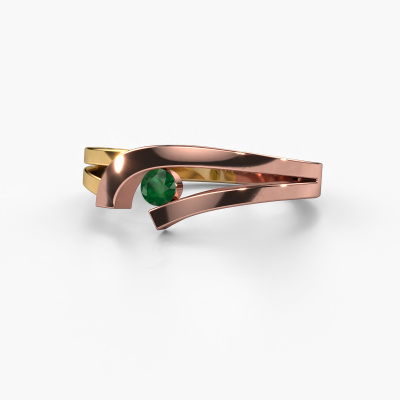This ring is called Yentl. It is made of 14 Carat rose gold and is set with 3 mm emerald. Are you looking for a unique rose gold ring with a modern appearance? Then this is the ring for you. Simply customize to your or her liking. Perfect for a modern, contemporary woman! This fantasy ring is adorned with stunning emerald. It was carefully selected because your ring must be adorned with nothing but the most beautiful gemstones. Our expert goldsmith will create your ring in our own studio, where the emerald will be set with great care. The ring will then be polished to perfection to create a beautiful ring. By using our modern techniques, we can design and customize the finest quality jewels with the utmost care for you. Our rings are always priced 30 percent lower than other jewellers. We make rings to order, so we don't have to maintain a large stock. If you have a certain budget, we are more than happy to advice you accordingly.Our team of talented, passionate designers add new ring designs to our online collection daily. Our objective in doing so, is to be able to offer you a wide variety of jewels. Please feel free to request a quote if you have specific wishes for your ring. We guarantee to make you an offer you can't refuse.To make it easier for you, we offer a 30 day return policy. Check our terms and conditions.