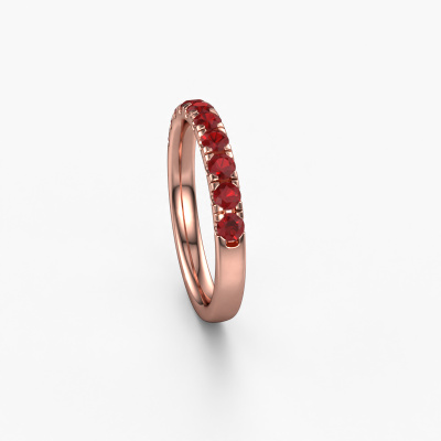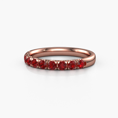 This ring is called Jackie Half. It is made of 14 Carat rose gold and is set with 2.4 mm ruby. Are you looking for a unique rose gold stackable ring with a modern appearance? Then this is the ring for you. Simply customize to your or her liking. Perfect for a modern, contemporary woman! This half eternity stackable ring is adorned with stunning ruby. It was carefully selected because your stackable ring must be adorned with nothing but the most beautiful gemstones. Our expert goldsmith will create your ring in our own studio, where the ruby will be set with great care. The ring will then be polished to perfection to create a beautiful ring. After receiving your order, our goldsmiths will passionately start the creative process of making your ring in our own studio. Because we don't have a big stockpile, these costs will not be passed on to you. Our pricing is proof of that! We offer top quality jewels at lowest price, guaranteed.New jewellery designs are added to our online collection daily. Our team of passionate designers strive to create extraordinary and diverse designs. Have you seen a ring you like? Please feel free to contact us. Based on a good price/ quality ratio, we will make you an offer you can't refuse!To make it easier for you, we offer a 30 day return policy. Check our terms and conditions.