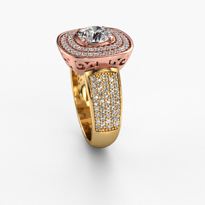 This exclusive rose gold Eliana ring is a true work of art! This ring is made of 14 Carat rose gold and is set with 1.54 crt round lab grown diamond. The smallest ornaments are crafted by our goldsmith with a lot of patience and great passion. In order to create this ring with great precision, this craft requires a keen eye and a skilful hand. A challenge which ignites a fire in our expert goldsmiths. The exquisite lab-grown diamonds are set in a way that their unique qualities are strengthened. This gives the ring an even more glamorous appearance. The ring is unique by itself though, because of the natural birthstones we selected especially for this Eliana ring. And by choosing the precious metal yourself, you create a unique ring. As soon as you finished designing your Eliana ring with our online tool, our goldsmiths will start their creative process of making your ring. This will be done with passion and care, according ancient crafting. On top of that, our jewels are made of eco-friendly materials. Simply customize online with our online tool, if you want any changes made. If you want specific changes made to your Eliana ring, that are unavailable in our online tool, please feel free to contact our expert designers.By using a combination of the latest modern techniques, combined with ancient crafting, we can make all our rings in our own studio. Each jewel is made to order. This is advantageous because we can offer you a price you won't find anywhere else.To make it easier for you, we offer a 30 day return policy. Check our terms and conditions.