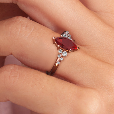How would you describe your own style? Are you looking for something uniquely different? This daring rose gold Royce MRQ ring is astonishing! Simply customize to your or her own liking. This ring is set with ruby. These ruby have been carefully