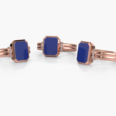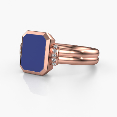 This rose gold women´s signet ring is a true work of art! This is our contemporary Gwenn 3 signet ring and it is set with a octagon blue enamel. In our crafting studio, we use a combination of the latest techniques and ancient traditional craftsmanship, so we are able to create a detailed perfect signet ring. Our expert goldsmiths are fascinated by signet rings. The signet ring can be engraved with initials or a family weapon. Signet rings with family weapons can be handed down from generation to generation and that usually is the case. On top of that, a signet ring is a beautiful, classy piece of jewellery which is trending once more. More than one reason to start or extend the tradition. Please browse our online database for more options on engravings. You can find the departments of our education centre at the bottom of this page. The contemporary Gwenn 3 signet ring, as shown here, can be customized to your liking. Our online tool offers many different options but please feel free to contact us if you want changes made to your Gwenn 3 signet ring, which are unavailable in our online tool.By using a combination of the latest modern techniques, combined with ancient crafting, we can make all our rings in our own studio. Each jewel is made to order. This is advantageous because we can offer you a price you won't find anywhere else.To make it easier for you, we offer a 30 day return policy. Check our terms and conditions.