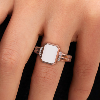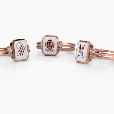 This rose gold women´s signet ring is a true work of art! This is our contemporary Gwenn 3 signet ring and it is set with a octagon red sardonyx. In our crafting studio, we use a combination of the latest techniques and ancient traditional craftsmanship, so we are able to create a detailed perfect signet ring. Our expert goldsmiths are fascinated by signet rings. The signet ring can be engraved with initials or a family weapon. Signet rings with family weapons can be handed down from generation to generation and that usually is the case. On top of that, a signet ring is a beautiful, classy piece of jewellery which is trending once more. More than one reason to start or extend the tradition. Please browse our online database for more options on engravings. You can find the departments of our education centre at the bottom of this page. The contemporary Gwenn 3 signet ring, as shown here, can be customized to your liking. Our online tool offers many different options but please feel free to contact us if you want changes made to your Gwenn 3 signet ring, which are unavailable in our online tool.By using a combination of the latest modern techniques, combined with ancient crafting, we can make all our rings in our own studio. Each jewel is made to order. This is advantageous because we can offer you a price you won't find anywhere else.To make it easier for you, we offer a 30 day return policy. Check our terms and conditions.