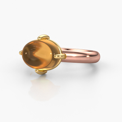 In this photo the rose gold Melodee ring is set with a cabochon citrin. Cabochon means a citrin is shaped first, not faceted, into a specific shape, such as a drop, heart or oval cabochon. Subsequently, it is polished until the gemstone has a orb shaped surface. A cabochon gemstone is a stunning, classy eye-catcher that matches perfectly with a contemporary as well as a vintage style. Our expert goldsmiths shape the charming ring to perfection which makes it unique. The cabochon citrin is set so its unique qualities are strengthened. Our goldsmiths passionately create your customized ring to your liking with the utmost care. The rose gold ring, as shown here, can be customized using our online tool. Feel free to ask our jewel designers for assistance if you want changes made which are unavailable in our online tool. We are happy to answer your questions.After receiving your order, our goldsmiths will passionately start the creative process of making your ring in our own studio. Because we don't have a big stockpile, these costs will not be passed on to you. Our pricing is proof of that! We offer top quality jewels at lowest price, guaranteed.To make it easier for you, we offer a 30 day return policy. Check our terms and conditions.
