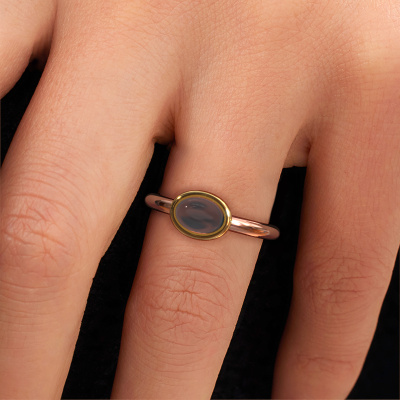 In this photo the rose gold Blossom OVL ring is set with a cabochon smokey quartz. Cabochon means a smokey quartz is shaped first, not faceted, into a specific shape, such as a drop, heart or oval cabochon. Subsequently, it is polished until the gemstone has a orb shaped surface. A cabochon gemstone is a stunning, classy eye-catcher that matches perfectly with a contemporary as well as a vintage style. Our expert goldsmiths shape the elegant ring to perfection which makes it unique. The cabochon smokey quartz is set so its unique qualities are strengthened. Customize your own elegantBlossom OVL ring, which will then be created by our goldsmiths with great passion. Do you prefer a different option than is shown here in the rose gold Blossom OVL ring? Then our online tools offers various options. Feel free to ask us for help if you are unable to succeed. We are happy to answer your questions!By using a combination of the latest modern techniques, combined with ancient crafting, we can make all our rings in our own studio. Each jewel is made to order. This is advantageous because we can offer you a price you won't find anywhere else.To make it easier for you, we offer a 30 day return policy. Check our terms and conditions.