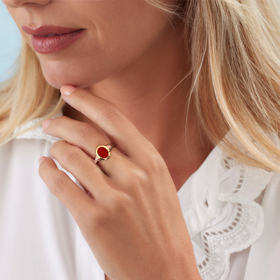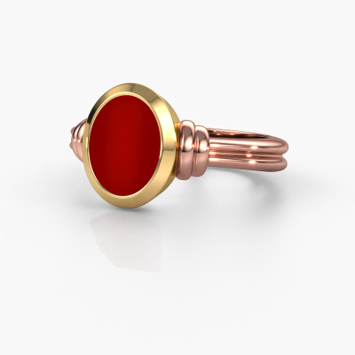 This rose gold women´s signet ring is a true work of art! This is our best price Brenda 1 signet ring and it is set with a oval shape carnelian. In our crafting studio, we use a combination of the latest techniques and ancient traditional craftsmanship, so we are able to create a detailed perfect signet ring. Our expert goldsmiths are fascinated by signet rings. The signet ring can be engraved with initials or a family weapon. Signet rings with family weapons can be handed down from generation to generation and that usually is the case. On top of that, a signet ring is a beautiful, classy piece of jewellery which is trending once more. More than one reason to start or extend the tradition. Please browse our online database for more options on engravings. You can find the departments of our education centre at the bottom of this page. The best price Brenda 1 signet ring, as shown here, can be customized to your liking. Our online tool offers many different options but please feel free to contact us if you want changes made to your Brenda 1 signet ring, which are unavailable in our online tool.After receiving your order, our goldsmiths will start the creative process of making your Brenda 1 ring. We don't keep stock. This is advantageous because these costs will not be passed on to you. Therefore, we can offer jewellery at exceptionally low prices.To make it easier for you, we offer a 30 day return policy. Check our terms and conditions.