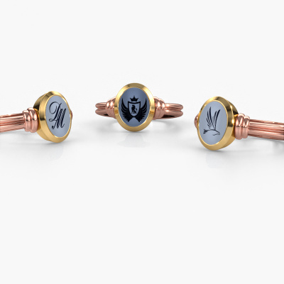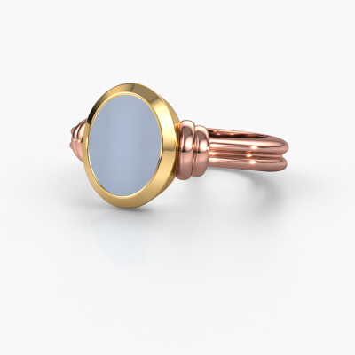 This rose gold women´s signet ring is a true work of art! This is our best price Brenda 1 signet ring and it is set with a oval shape light blue sardonyx. In our crafting studio, we use a combination of the latest techniques and ancient traditional craftsmanship, so we are able to create a detailed perfect signet ring. Our expert goldsmiths are fascinated by signet rings. The signet ring can be engraved with initials or a family weapon. Signet rings with family weapons can be handed down from generation to generation and that usually is the case. On top of that, a signet ring is a beautiful, classy piece of jewellery which is trending once more. More than one reason to start or extend the tradition. Please browse our online database for more options on engravings. You can find the departments of our education centre at the bottom of this page. The best price Brenda 1 signet ring, as shown here, can be customized to your liking. Our online tool offers many different options but please feel free to contact us if you want changes made to your Brenda 1 signet ring, which are unavailable in our online tool.After receiving your order, our goldsmiths will start the creative process of making your Brenda 1 ring. We don't keep stock. This is advantageous because these costs will not be passed on to you. Therefore, we can offer jewellery at exceptionally low prices.To make it easier for you, we offer a 30 day return policy. Check our terms and conditions.