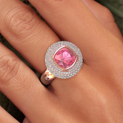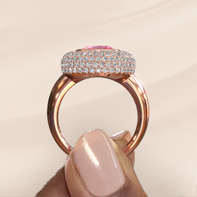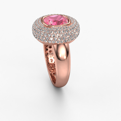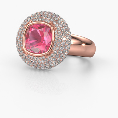 This exclusive rose gold Keshia ring is a true work of art! This ring is made of 14 Carat rose gold and is set with 8 mm cushion pink sapphire. The smallest ornaments are crafted by our goldsmith with a lot of patience and great passion. In order to create this ring with great precision, this craft requires a keen eye and a skilful hand. A challenge which ignites a fire in our expert goldsmiths. The exquisite pink sapphire are set in a way that their unique qualities are strengthened. This gives the ring an even more glamorous appearance. The ring is unique by itself though, because of the natural birthstones we selected especially for this Keshia ring. And by choosing the precious metal yourself, you create a unique ring. Our goldsmiths passionately create your customized ring to your liking with the utmost care. The rose gold ring, as shown here, can be customized using our online tool. Feel free to ask our jewel designers for assistance if you want changes made which are unavailable in our online tool. We are happy to answer your questions.By using our modern techniques, we can design and customize the finest quality jewels with the utmost care for you. Our rings are always priced 30 percent lower than other jewellers. We make rings to order, so we don't have to maintain a large stock. If you have a certain budget, we are more than happy to advice you accordingly.To make it easier for you, we offer a 30 day return policy. Check our terms and conditions.
