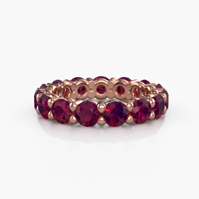 This exclusive rose gold Heddy rnd 4.2 ring is a true work of art! This ring is made of 14 Carat rose gold and is set with 4.2 mm round rhodolite. The smallest ornaments are crafted by our goldsmith with a lot of patience and great passion. In order to create this ring with great precision, this craft requires a keen eye and a skilful hand. A challenge which ignites a fire in our expert goldsmiths. The exquisite rhodolite are set in a way that their unique qualities are strengthened. This gives the ring an even more glamorous appearance. The ring is unique by itself though, because of the natural birthstones we selected especially for this Heddy rnd 4.2 ring. And by choosing the precious metal yourself, you create a unique ring. The best part of this eternity ring is that you can customize it to your own liking. Your style, your choice, your ring. On top of that, your exclusive rose gold ring will be made by hand with eco-friendly materials! Please feel free to easily customize the ring, using our online tool.After receiving your order, our goldsmiths will start the creative process of making your Heddy rnd 4.2 ring. We don't keep stock. This is advantageous because these costs will not be passed on to you. Therefore, we can offer jewellery at exceptionally low prices.To make it easier for you, we offer a 30 day return policy. Check our terms and conditions.