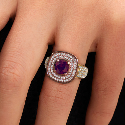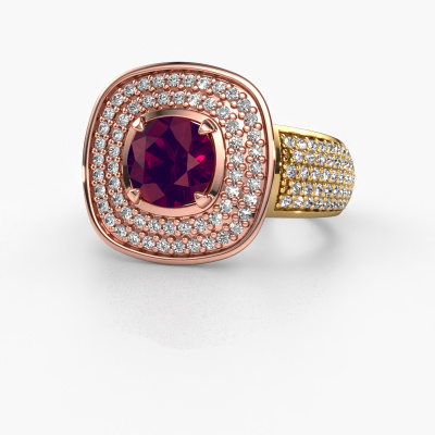 This exclusive rose gold Eliana ring is a true work of art! This ring is made of 14 Carat rose gold and is set with 6 mm round rhodolite. The smallest ornaments are crafted by our goldsmith with a lot of patience and great passion. In order to create this ring with great precision, this craft requires a keen eye and a skilful hand. A challenge which ignites a fire in our expert goldsmiths. The exquisite rhodolite are set in a way that their unique qualities are strengthened. This gives the ring an even more glamorous appearance. The ring is unique by itself though, because of the natural birthstones we selected especially for this Eliana ring. And by choosing the precious metal yourself, you create a unique ring. As soon as you finished designing your Eliana ring with our online tool, our goldsmiths will start their creative process of making your ring. This will be done with passion and care, according ancient crafting. On top of that, our jewels are made of eco-friendly materials. Simply customize online with our online tool, if you want any changes made. If you want specific changes made to your Eliana ring, that are unavailable in our online tool, please feel free to contact our expert designers.By using a combination of the latest modern techniques, combined with ancient crafting, we can make all our rings in our own studio. Each jewel is made to order. This is advantageous because we can offer you a price you won't find anywhere else.To make it easier for you, we offer a 30 day return policy. Check our terms and conditions.