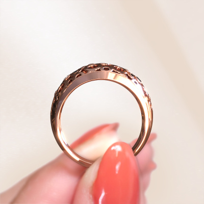 How would you describe your own style? Are you looking for something uniquely different? This wide rose gold Jaylinn ring is astonishing! Simply customize to your or her own liking. This ring is set with black diamond. These black diamonds have been carefully selected because your ring must be adorned with nothing but the most beautiful gemstone. Wouldn't you agree? Our expert goldsmith will create your ring in our own crafting studios, where the black diamond will be set with care. The ring will then be polished to perfection to give it that extra sparkle. It's a perfect ring for a woman of excellent taste!How do you like this fantasy rose gold ring? Simply customize this Jaylinn ring, using our online tool. Subsequently, your personal wide Jaylinn ring will be made by hand by our goldsmiths. Precious metals and gemstones can be customized to your liking. Do you have specific preferences which are unavailable in our online tool? Please feel free to contact us. We will customize your personal fantasy ring to your liking.By using our modern techniques, we can design and customize the finest quality jewels with the utmost care for you. Our rings are always priced 30 percent lower than other jewellers. We make rings to order, so we don't have to maintain a large stock. If you have a certain budget, we are more than happy to advice you accordingly.To make it easier for you, we offer a 30 day return policy. Check our terms and conditions.