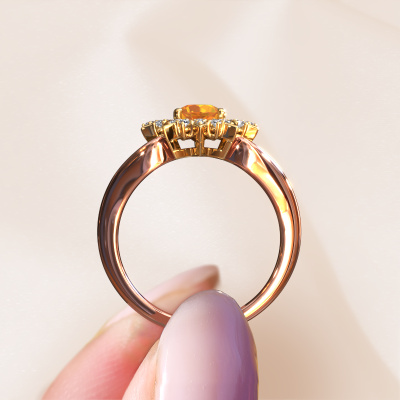 How would you describe your own style? Are you looking for something uniquely different? This royal rose gold Chasidy 1 ring is astonishing! Simply customize to your or her own liking. This ring is set with citrin. These citrin have been carefully selected because your ring must be adorned with nothing but the most beautiful gemstone. Wouldn't you agree? Our expert goldsmith will create your ring in our own crafting studios, where the citrin will be set with care. The ring will then be polished to perfection to give it that extra sparkle. It's a perfect ring for a woman of excellent taste!How do you like this exclusive rose gold ring? Simply customize this Chasidy 1 ring, using our online tool. Subsequently, your personal royal Chasidy 1 ring will be made by hand by our goldsmiths. Precious metals and gemstones can be customized to your liking. Do you have specific preferences which are unavailable in our online tool? Please feel free to contact us. We will customize your personal exclusive ring to your liking.By using a combination of the latest modern techniques, combined with ancient crafting, we can make all our rings in our own studio. Each jewel is made to order. This is advantageous because we can offer you a price you won't find anywhere else.To make it easier for you, we offer a 30 day return policy. Check our terms and conditions.