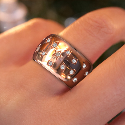 How would you describe your own style? Are you looking for something uniquely different? This wide rose gold Sasha 2 ring is astonishing! Simply customize to your or her own liking. This ring is set with lab grown diamond. These lab-grown diamonds have been carefully selected because your ring must be adorned with nothing but the most beautiful gemstone. Wouldn't you agree? Our expert goldsmith will create your ring in our own crafting studios, where the lab grown diamond will be set with care. The ring will then be polished to perfection to give it that extra sparkle. It's a perfect ring for a woman of excellent taste!As soon as you finished designing your Sasha 2 ring with our online tool, our goldsmiths will start their creative process of making your ring. This will be done with passion and care, according ancient crafting. On top of that, our jewels are made of eco-friendly materials. Simply customize online with our online tool, if you want any changes made. If you want specific changes made to your Sasha 2 ring, that are unavailable in our online tool, please feel free to contact our expert designers.After receiving your order, our goldsmiths will passionately start the creative process of making your ring in our own studio. Because we don't have a big stockpile, these costs will not be passed on to you. Our pricing is proof of that! We offer top quality jewels at lowest price, guaranteed.To make it easier for you, we offer a 30 day return policy. Check our terms and conditions.