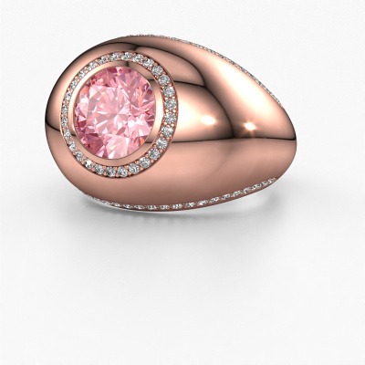 This is a stunning birthstones rose gold Roxann ring. It is set with pink lab grown diamond. A designer ring, fit for classy women. The ring is designed by our own expert goldsmiths. In our artisan studio, we use a combination of the latest