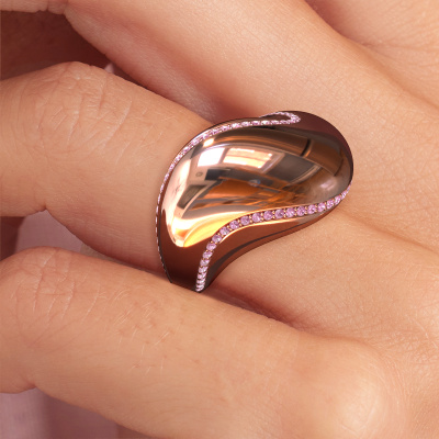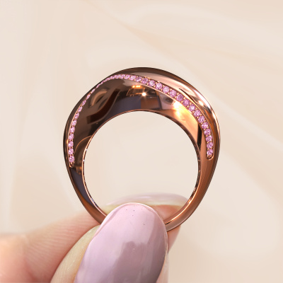 This is a stunning tasteful rose gold Phyliss ring. It is set with pink sapphire. A designer ring, fit for classy women. The ring is designed by our own expert goldsmiths. In our artisan studio, we use a combination of the latest techniques and ancient traditional craftsmanship, so we are able to create a perfectly designed ring. Our expert goldsmiths strive for perfection so they won't stop until a perfect ring, a true work of art, is created. A unique ring which matches your own style. The best part of this tasteful ring is that you can customize it to your own liking. Your style, your choice, your ring. On top of that, your design rose gold ring will be made by hand with eco-friendly materials! Please feel free to easily customize the ring, using our online tool.After receiving your order, our goldsmiths will passionately start the creative process of making your ring in our own studio. Because we don't have a big stockpile, these costs will not be passed on to you. Our pricing is proof of that! We offer top quality jewels at lowest price, guaranteed.To make it easier for you, we offer a 30 day return policy. Check our terms and conditions.