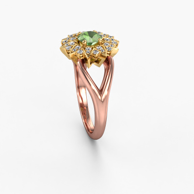 How would you describe your own style? Are you looking for something uniquely different? This royal rose gold Chasidy 1 ring is astonishing! Simply customize to your or her own liking. This ring is set with tourmaline green. These tourmaline green have been carefully selected because your ring must be adorned with nothing but the most beautiful gemstone. Wouldn't you agree? Our expert goldsmith will create your ring in our own crafting studios, where the tourmaline green will be set with care. The ring will then be polished to perfection to give it that extra sparkle. It's a perfect ring for a woman of excellent taste!How do you like this exclusive rose gold ring? Simply customize this Chasidy 1 ring, using our online tool. Subsequently, your personal royal Chasidy 1 ring will be made by hand by our goldsmiths. Precious metals and gemstones can be customized to your liking. Do you have specific preferences which are unavailable in our online tool? Please feel free to contact us. We will customize your personal exclusive ring to your liking.By using a combination of the latest modern techniques, combined with ancient crafting, we can make all our rings in our own studio. Each jewel is made to order. This is advantageous because we can offer you a price you won't find anywhere else.To make it easier for you, we offer a 30 day return policy. Check our terms and conditions.