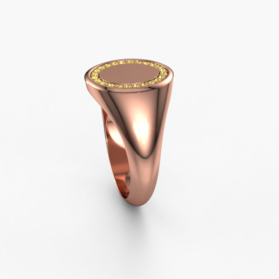 This rose gold women´s signet ring is a true work of art! This is our charming Rosy Oval 2 signet ring and it is set with a round yellow sapphire. In our crafting studio, we use a combination of the latest techniques and ancient traditional