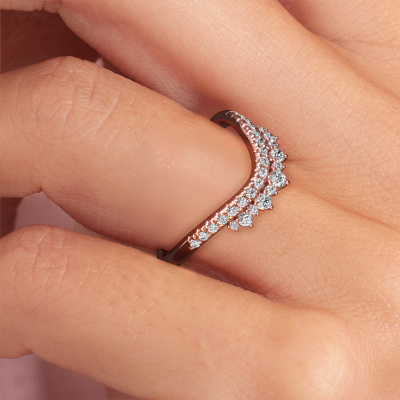 This Nica B stackable ring in 14 Carat rose gold is set with zirconia. This rose gold stacked Nica B ring is the perfect addition to your ring collection! As the name suggests, it is a ring which can be combined on one finger with another ring. It gives you the opportunity to create your own style. A stacked ring usually represents a certain memory of someone special or a memorable moment. It is common to combine a stacked ring, representing an anniversary, with a wedding ring. But this fashionable ring, combined with your other rings, also makes a classy fashion item. The fashionable Nica B stackable ring, as shown here, can be customized to your liking. Our online tool offers many different options but please feel free to contact us if you want changes made to your Nica B stackable ring, which are unavailable in our online tool.By using our modern techniques, we can design and customize the finest quality jewels with the utmost care for you. Our rings are always priced 30 percent lower than other jewellers. We make rings to order, so we don't have to maintain a large stock. If you have a certain budget, we are more than happy to advice you accordingly.To make it easier for you, we offer a 30 day return policy. Check our terms and conditions.