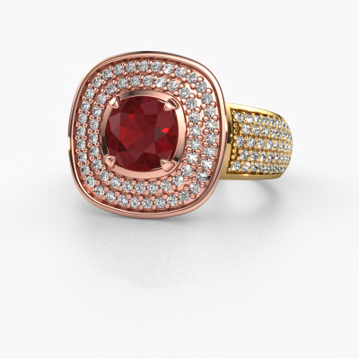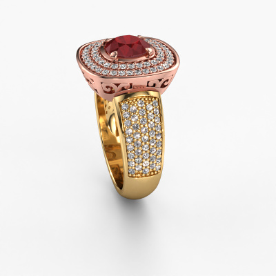 This exclusive rose gold Eliana ring is a true work of art! This ring is made of 14 Carat rose gold and is set with 6 mm round ruby. The smallest ornaments are crafted by our goldsmith with a lot of patience and great passion. In order to create this ring with great precision, this craft requires a keen eye and a skilful hand. A challenge which ignites a fire in our expert goldsmiths. The exquisite ruby are set in a way that their unique qualities are strengthened. This gives the ring an even more glamorous appearance. The ring is unique by itself though, because of the natural birthstones we selected especially for this Eliana ring. And by choosing the precious metal yourself, you create a unique ring. As soon as you finished designing your Eliana ring with our online tool, our goldsmiths will start their creative process of making your ring. This will be done with passion and care, according ancient crafting. On top of that, our jewels are made of eco-friendly materials. Simply customize online with our online tool, if you want any changes made. If you want specific changes made to your Eliana ring, that are unavailable in our online tool, please feel free to contact our expert designers.By using a combination of the latest modern techniques, combined with ancient crafting, we can make all our rings in our own studio. Each jewel is made to order. This is advantageous because we can offer you a price you won't find anywhere else.To make it easier for you, we offer a 30 day return policy. Check our terms and conditions.