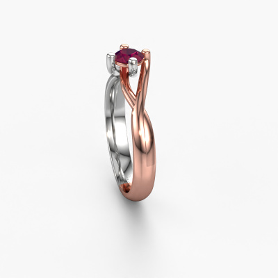This ring is called Paulien. It is made of 14 Carat rose gold and is set with 4.2 mm rhodolite. Are you looking for a unique rose gold ring with a modern appearance? Then this is the ring for you. Simply customize to your or her liking. Perfect for a modern, contemporary woman! This special ring is adorned with stunning rhodolite. It was carefully selected because your ring must be adorned with nothing but the most beautiful gemstones. Our expert goldsmith will create your ring in our own studio, where the rhodolite will be set with great care. The ring will then be polished to perfection to create a beautiful ring. After receiving your order, our goldsmiths will start the creative process of making your Paulien ring. We don't keep stock. This is advantageous because these costs will not be passed on to you. Therefore, we can offer jewellery at exceptionally low prices.