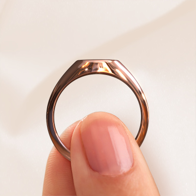 What a wide signet ring indeed! This ring is called Rochelle 2. A classy wide signet ring, that suits the contemporary, fashionable woman. This signet ring is proof of our new method of crafting. We came up with a process in our own studio in which the old as well as new ways of crafting are unified in perfect harmony. We make a detailed 3D design of the intended ring. Then our expert goldsmith crafts your ring into perfection. A unique ring, styled to your liking. As soon as you finished designing your Rochelle 2 signet ring with our online tool, our goldsmiths will start their creative process of making your ring. This will be done with passion and care, according ancient crafting. On top of that, our jewels are made of eco-friendly materials. Simply customize online with our online tool, if you want any changes made. If you want specific changes made to your Rochelle 2 signet ring, that are unavailable in our online tool, please feel free to contact our expert designers.After receiving your order, our goldsmiths will passionately start the creative process of making your ring in our own studio. Because we don't have a big stockpile, these costs will not be passed on to you. Our pricing is proof of that! We offer top quality jewels at lowest price, guaranteed.To make it easier for you, we offer a 30 day return policy. Check our terms and conditions.