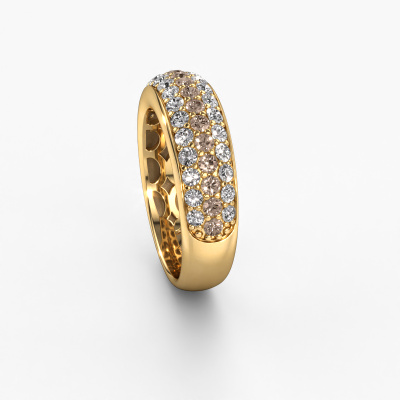 This pave set ring is called Emely 8. This 14 Carat gold ring is set with brown diamonds 1.316 crt. The band of this gold ring is set with rows of brown diamonds which seem to have no beginning nor end. Our goldsmith carefully selects the gemstones and sets them with the utmost precision. For maximum shine, the brown diamonds have to align perfectly. While artfully crafting and polishing the jewellery, light fall is constantly monitored, until the expert goldsmith is satisfied with the result. Designed by you, created especially for you!The royal Emely 8 ring, as shown here, can be customized to your liking. Our online tool offers many different options but please feel free to contact us if you want changes made to your Emely 8 ring, which are unavailable in our online tool.After receiving your order, our goldsmiths will passionately start the creative process of making your ring in our own studio. Because we don't have a big stockpile, these costs will not be passed on to you. Our pricing is proof of that! We offer top quality jewels at lowest price, guaranteed.To make it easier for you, we offer a 30 day return policy. Check our terms and conditions.